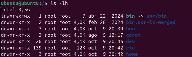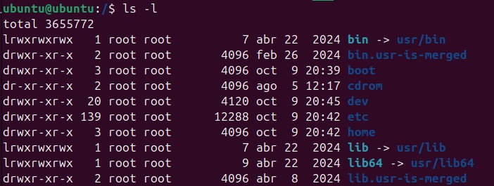 El comando ls -l mostrara varios datos, pero especificamente muestra el autor del archivo o directorio, como es el sistema raiz el usuario es root.