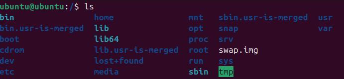 Cuando se ejecuta sin argumentos mostrara los archivos y carpetas que se encuentren en el directorio donde se ejecuta, en este caso es en la raiz del sistema y los ordenara en orden alfabetico.