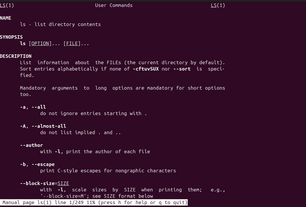 Si quieres profundizar mas sobre como se puede ejecutar este comando podemos escribir en la terminal el comando man ls y nos dara una guia sobre como usar este comando con sus diferentes argumentos.